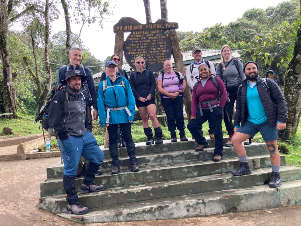 Our group joined forces at hotel reception after breakfast and met some of the team who would be supporting us on our adventure. They took charge of our well packed duffel bags and loaded them onto the transport, ready to head to our starting point at the Machame Gate.