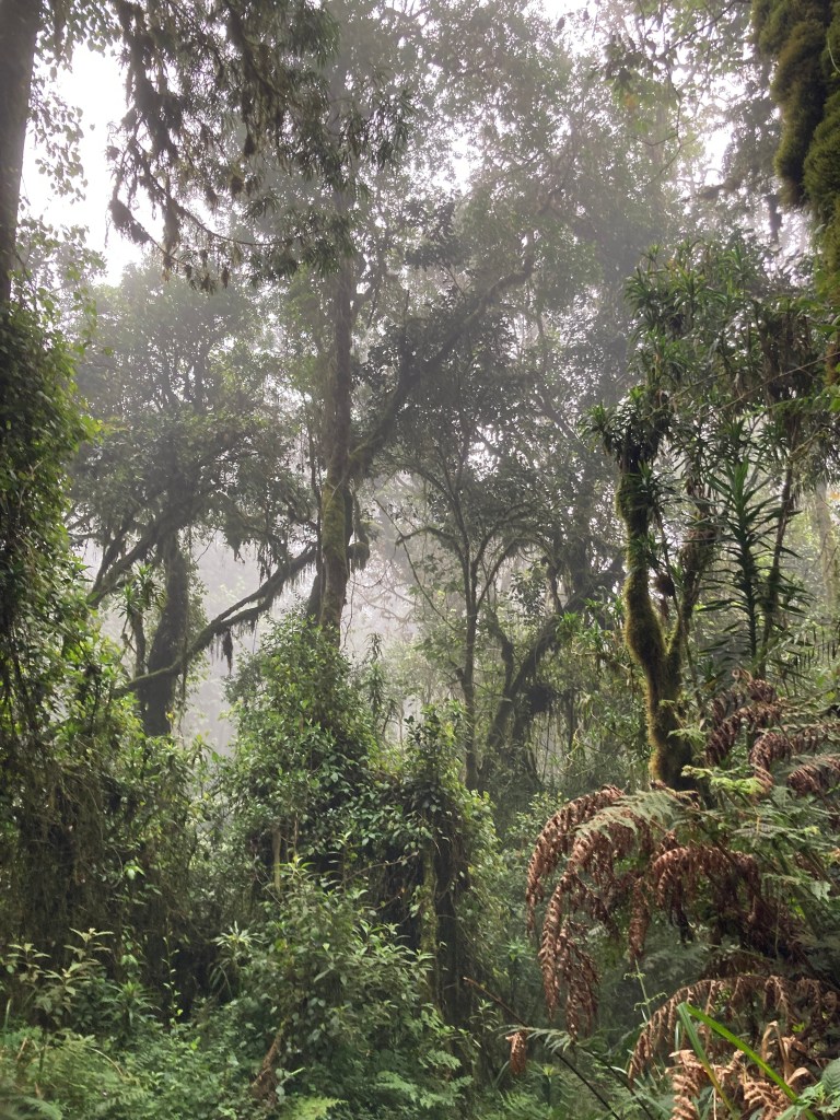 Finally we were off, 1:30pm and a 5 hour walk ahead, all uphill of course, through lush rainforest. We arrived at Machame Camp 2835m at nightfall, our home for the night.