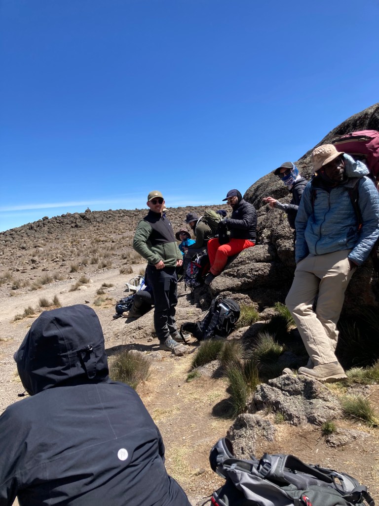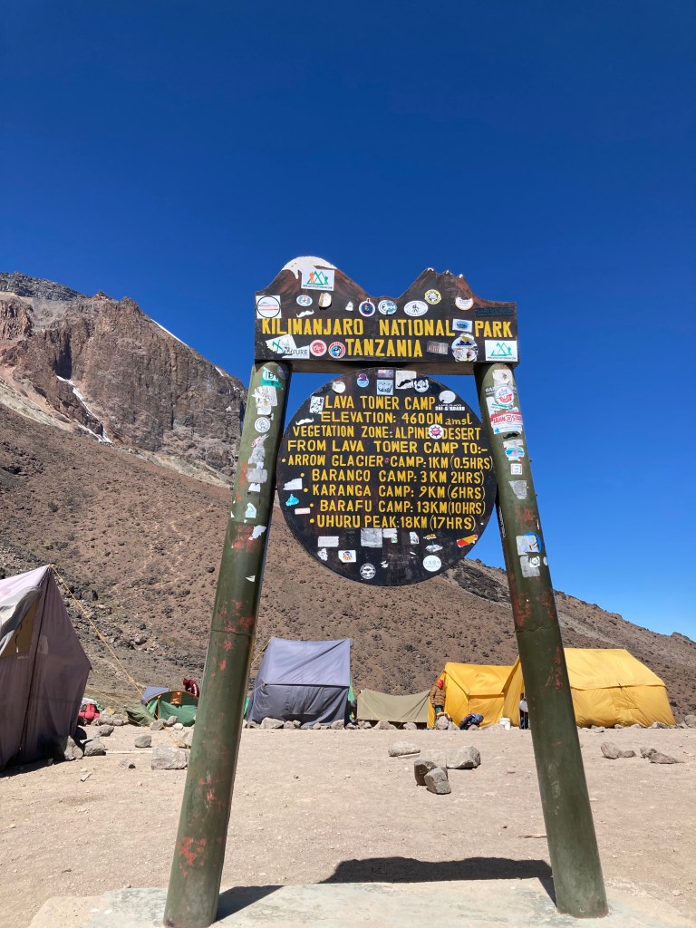 After an improved nights sleep, we were once again woken at 6:00am with hot tea and breakfast calling. After packing our daypacks we headed out of camp with a goal to reach Lava Tower for lunch, before descending to camp for the night. This was the day that we would begin to ‘feel the mountain’ according to our guides, and we were all on the look out for signs and symptoms of altitude. This was an important acclimatisation day, and there were many ‘pole pole’ calls (slowly)