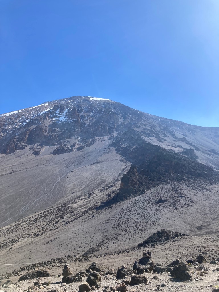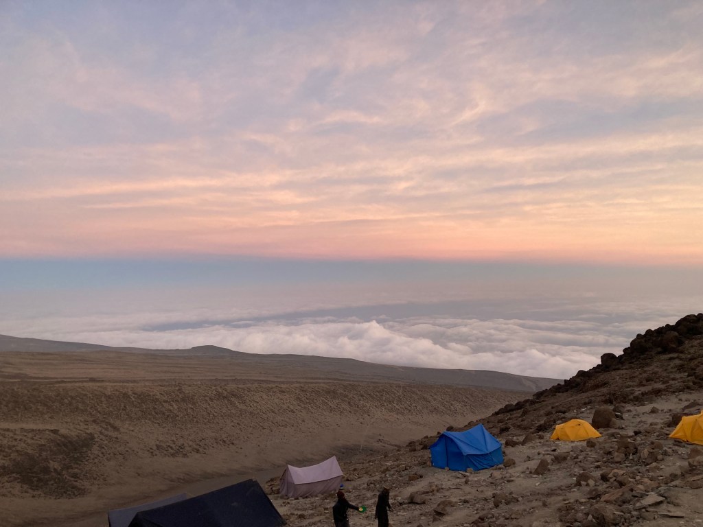After being woken at 6:00am with hot tea, we had breakfast and packed our daypacks ready for the day ahead. The sun was shining strong, and we were well above the clouds now, but it was definitely getting cooler and layers were the thought of the day. Today we’d be heading up to our base camp, formally known as Barafu Camp, sitting at 4673m.