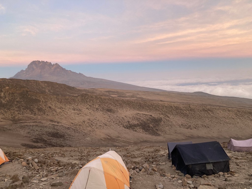 This day was so much better than the previous one! It was more like day 3 and I started to enjoy the day. Slow (pole pole) and steady was the theme of the day, and we arrived at camp by early afternoon. We were immediately fed and then sent to our tents to rest and sleep if we could, as today was the day before our summit push!
